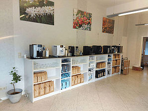 • Bei uns können Sie auch Kaffee kaufen.
