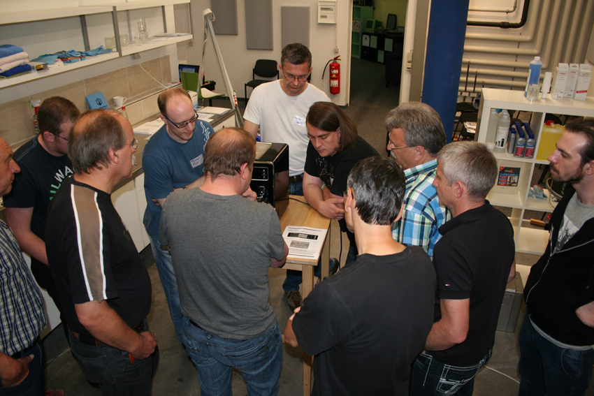 Dann geht es direkt in den Praxisteil über (dieser macht ca. 80% der Schulung aus). Hier werden wir auf die wichtigsten Fabrikate eingehen und zerlegen jeweils ein Gerät von Saeco, De Longhi und Nivona. Auch Jura Geräte werden intensiv geschult. Wir arbeiten in kleinen Gruppen, so dass jeder Teilnehmer auch praktische Erfahrungen sammeln kann.