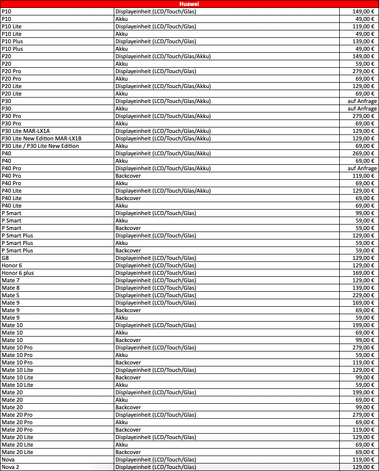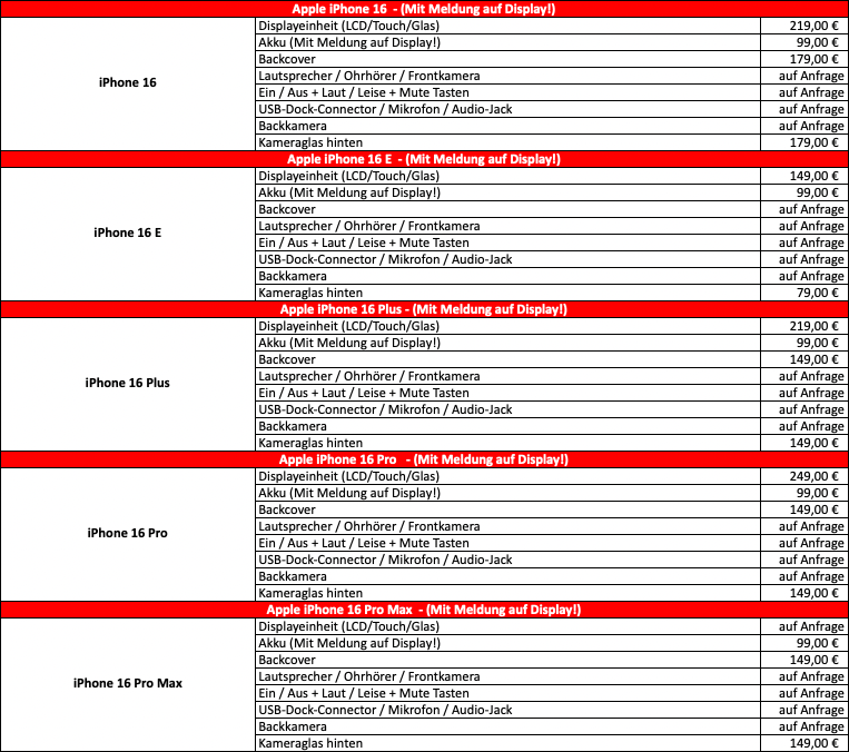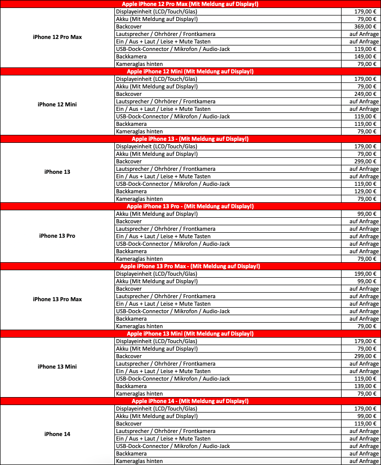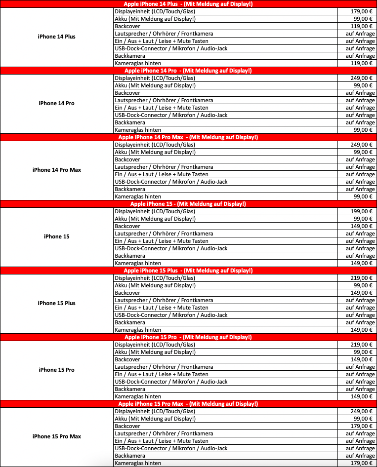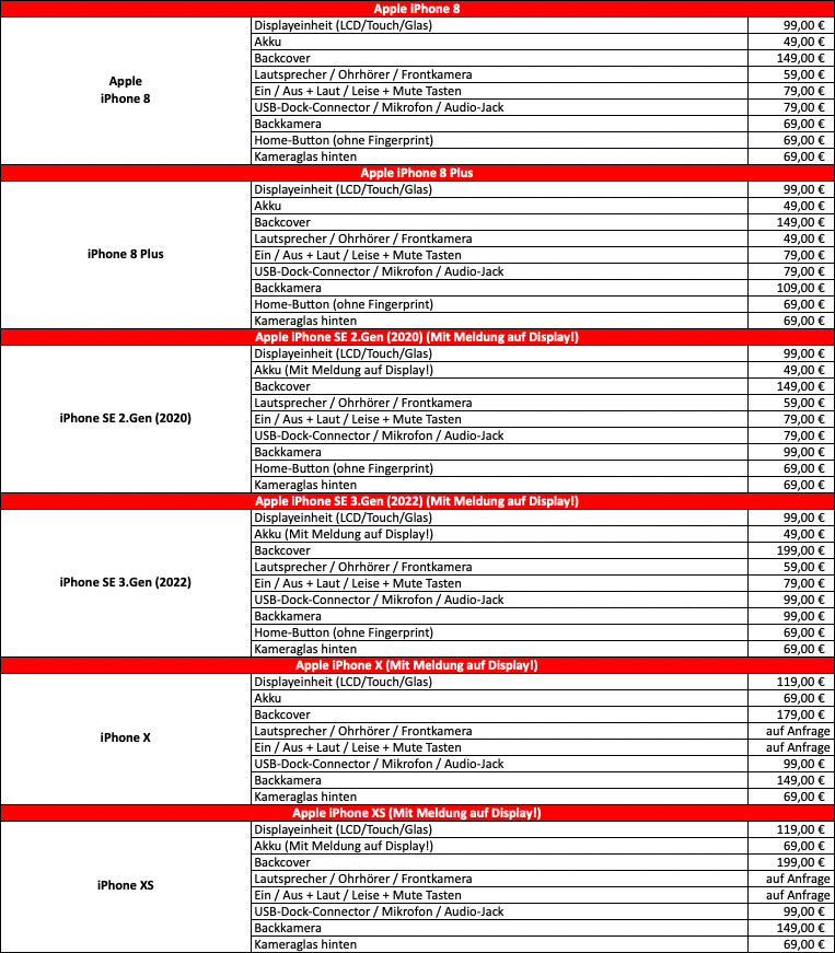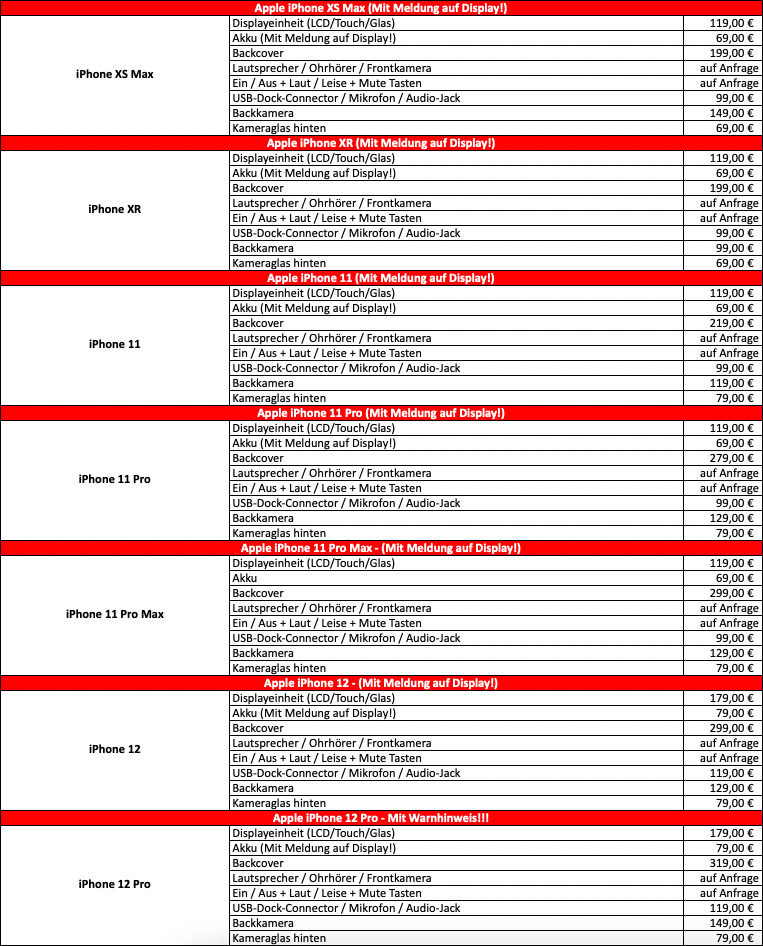 • Bei der Reparatur eines iPhones installieren wir Ihnen auf Wunsch ein Panzerglas kostenlos. Der Preis für ein Glas liegt bei 15.00 € inkl. Anbringung.